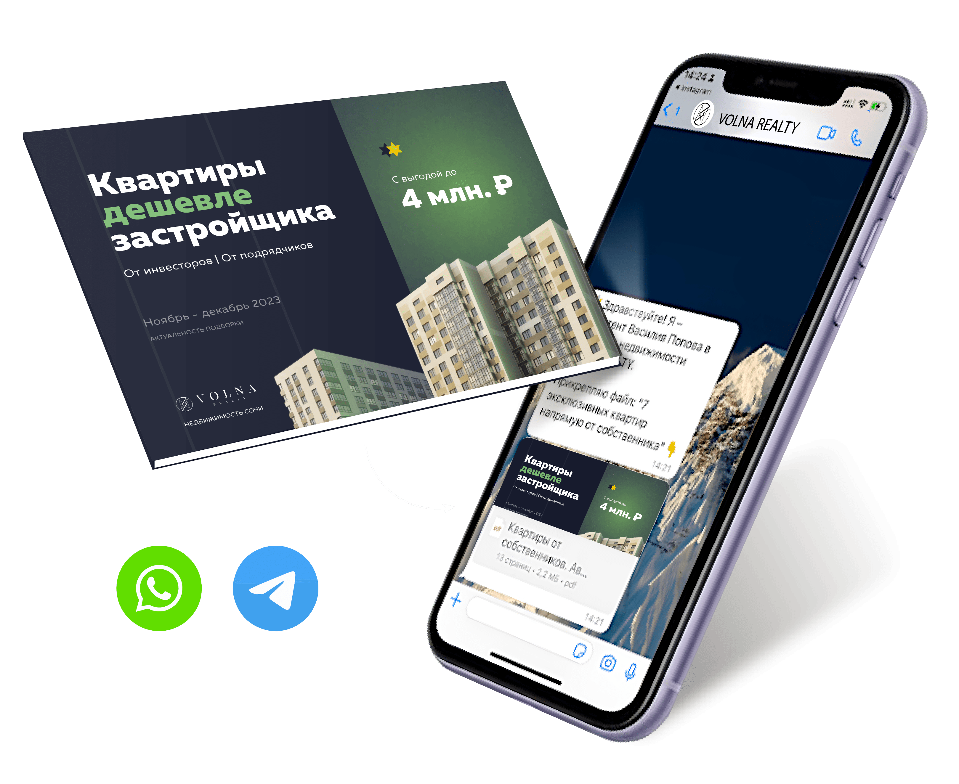 Укажите актуальный телефон, привязанный к WhatsApp или Telegram. Ассистент VOLNA REALTY отправит файл Вам в мессенджер: