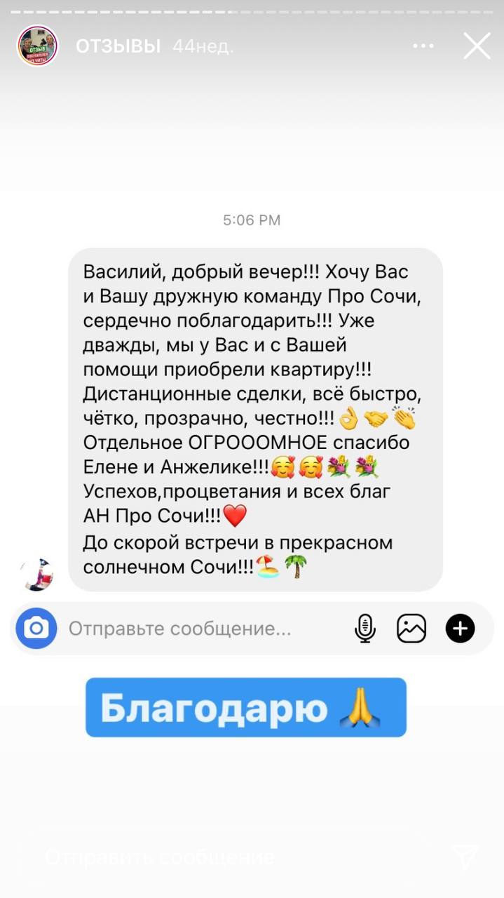 Приветствую! Меня зовут Василий Попов, я основатель агентства недвижимости ProSochi. На сегодняшний день нами успешно реализовано более 250 сделок. Будучи партнёрами ведущих застройщиков Сочи, мы помогаем нашим клиентам - инвесторам зарабатывать от 30 до 70% годовых на строящейся недвижимости.